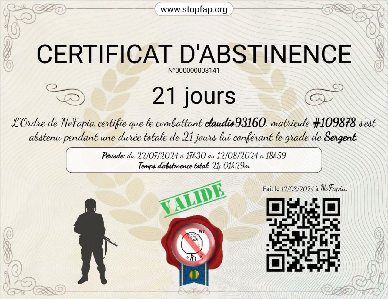 Mon no fap actuel est mon record depuis 15 ans. je suis très fière et je ferai tout pour tenir le plus longtemps possible.